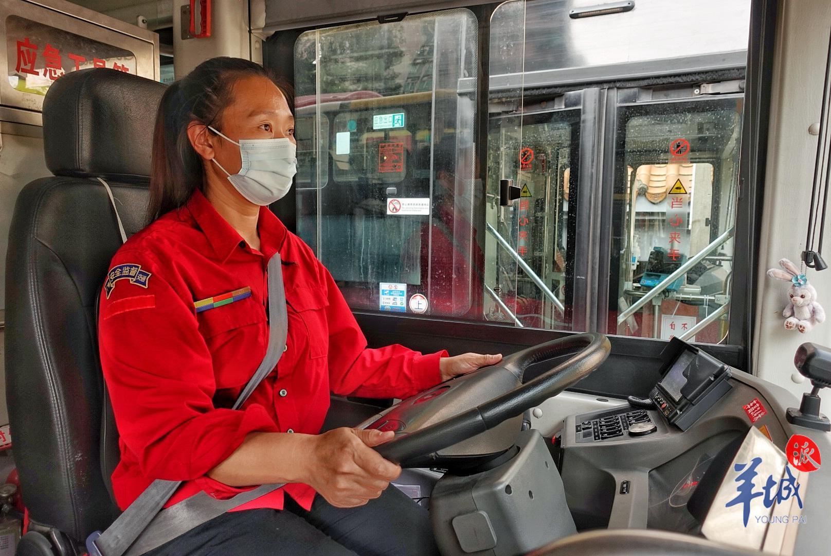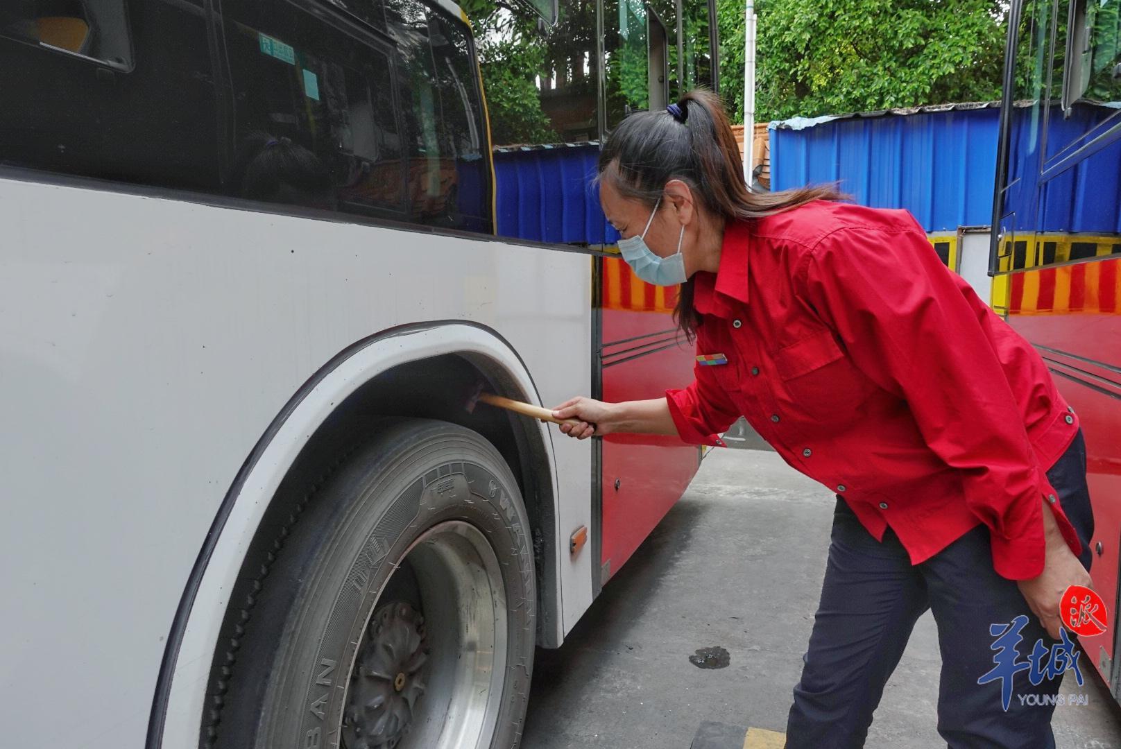 绕车一周,检查轮胎、电池、机油、仪表盘等系统设备;落座扣紧安全带,左右观察,等待三秒后起步……这是广州巴士集团有限公司电车分公司三车队275A线驾驶员姚玉艳的出车“必备动作”。