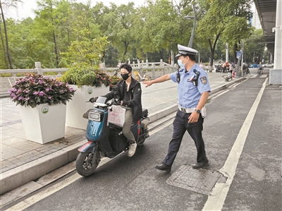 交警纠正电动自行车骑行陋习