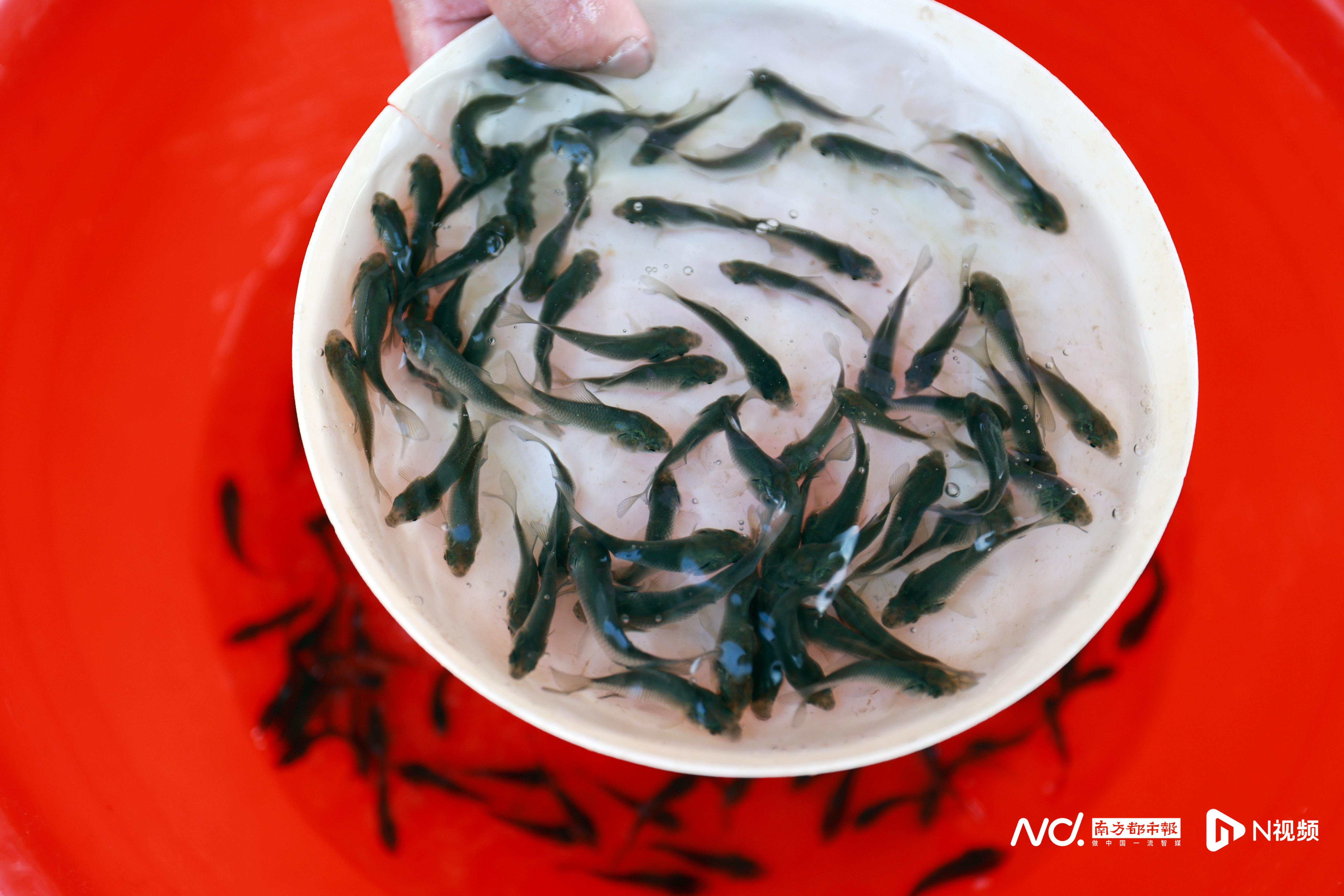 此时,一群黑色的“穗丰鲫”小鱼苗正在水中游动。一年时间内,这种鱼苗便可以在全国卖出10亿尾,连黑龙江等地都有它的身影。