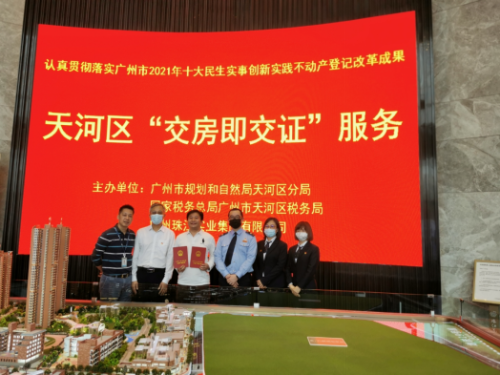 “交房即交证”是群众期盼的民生热点,广州市规划和自然资源局按照最优模式设计、统一规则指引、多方联动实施的路径,在全市范围常态化、全覆盖开展“交房即交证”服务。2021年起,全市登记机构协同商品房楼盘项目(覆盖全市11个行政区域)开展“交房即交证”现场服务,同步通过网上申办路径办理该类业务14万余宗,赢得开发企业、银行、购房人赞许,取得良好社会反响。