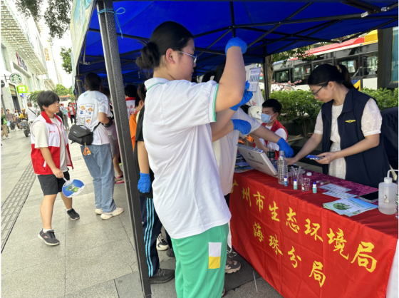 在活动现场,海珠分局工作人员派发宣传单张,向往来群众宣讲生态环境保护法律法规。用水质快速检测包对河涌水进行COD、氨氮等指标的快速检测,向群众科普水质检测的相关知识,并指导学生亲自动手实验,直观展示海珠区水污染防治成效。通过讲解各指标的意义、主要污染来源及防治措施,倡导绿色环保生活方式,凝聚全民治水的合力。