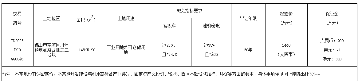 八、自本次公告起至网上挂牌截止期间,如有关于本宗地竞买文件的修改、澄清、说明等将通过网上交易系统以及佛山市南海区人民政府网发布,请有意参与竞买者密切留意。其它未尽事宜,详见本宗地的网上挂牌出让文件。
