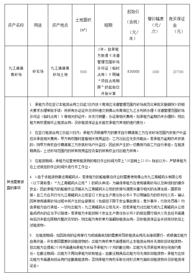 1.招/出租人:佛山市南海区九江镇镇有资产管理有限公司