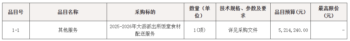 项目名称:2025-2026年大沥派出所饭堂食材配送服务