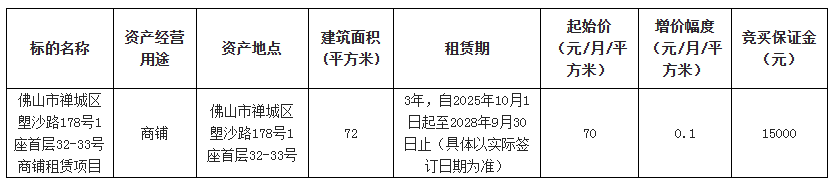 2.佛山市公共资源交易中心南海分中心通过佛山市资产交易网上交易系统及粤公平网站发布的项目信息(包括但不限于公告信息、交易文件、合同条款等)并不构成佛山市公共资源交易中心南海分中心对项目的任何交易建议。意向竞买人应不依赖于已披露的项目信息并自行对项目的相关情况进行必要的尽职调查和充分了解,对是否竞买该项目及项目成交后可能发生的费用和存在的风险自行作出充分评估,并独立承担所有风险。意向竞买人一经申请参加竞买,即视为知晓、认可项目现状,佛山市公共资源交易中心南海分中心对此不承担任何法律责任。