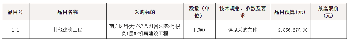 采购包1(南方医科大学第八附属医院2号楼负1层MR机房建设工程):