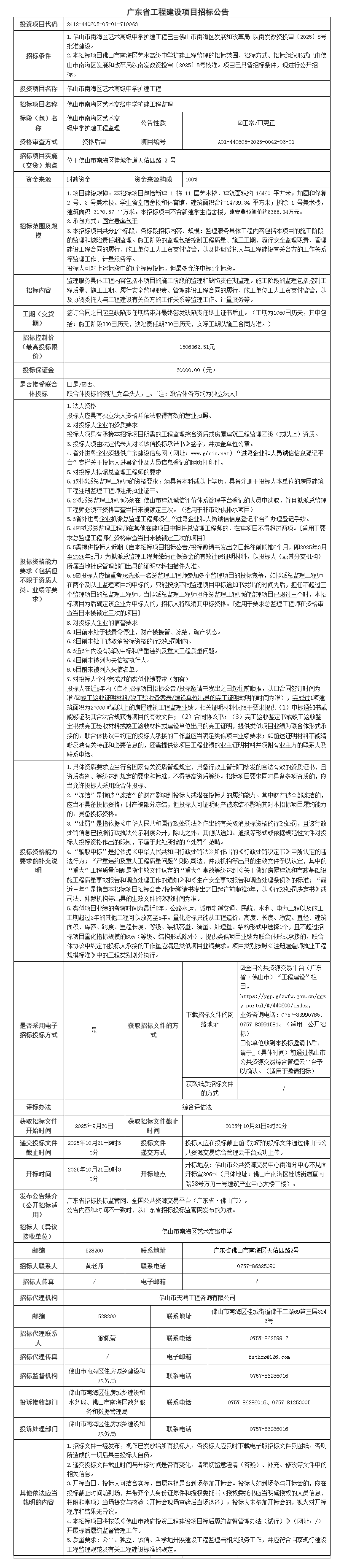 佛山市南海区艺术高级中学扩建工程监理招标公告