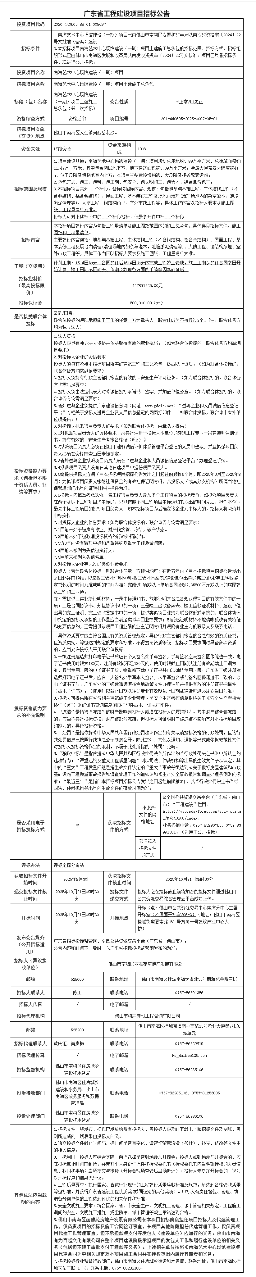 南海艺术中心场馆建设(一期)项目土建施工总承包招标公告