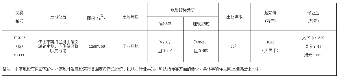 八、自本次公告起至网上挂牌截止期间,如有关于本宗地竞买文件的修改、澄清、说明等将通过网上交易系统以及佛山市南海区人民政府网发布,请有意参与竞买者密切留意。其它未尽事宜,详见本宗地的网上挂牌出让文件。