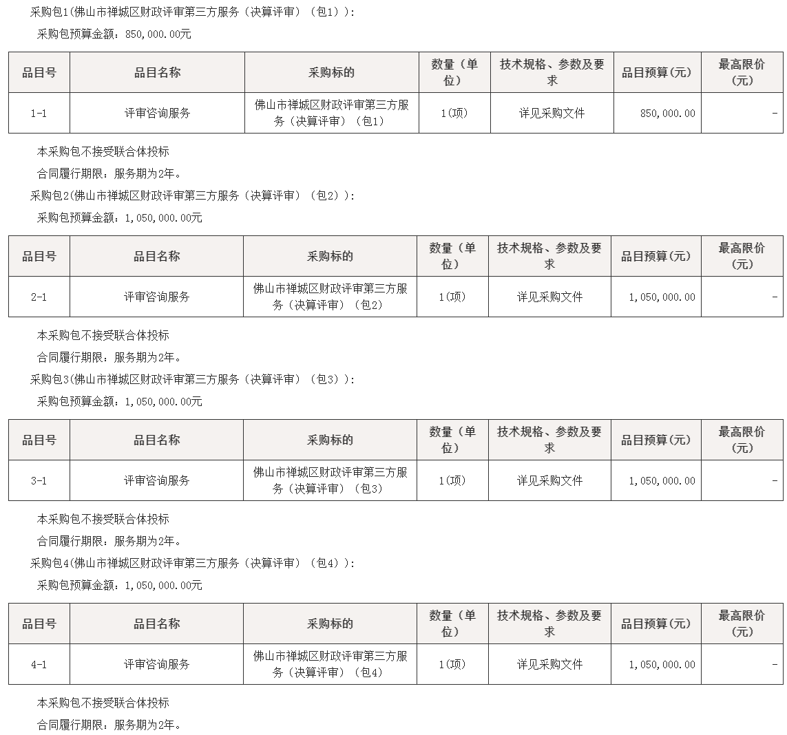 采购包4(佛山市柒伍柒科技有限公司财政评审第三方服务(决算评审)(包4))落实政府采购政策需满足的资格要求如下: