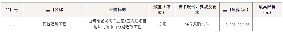 采购包1(白坭镇聚龙湾产业园A区彩虹项目地块北侧电力线路迁改工程):