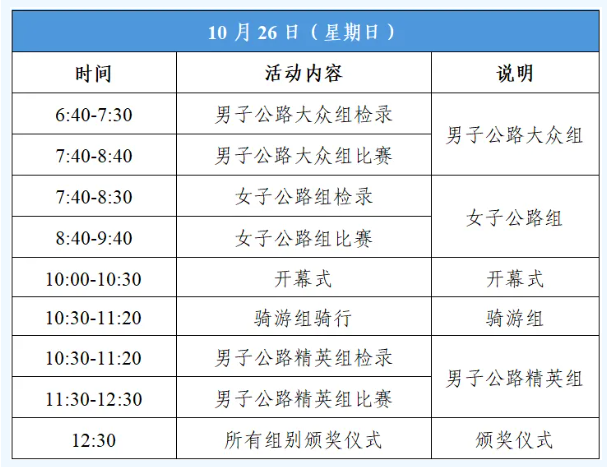 1.原定10月26日8:00-9:00竞技项目组别的额外签到时间取消。