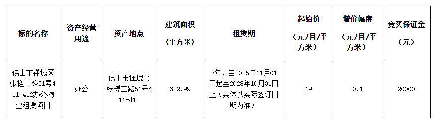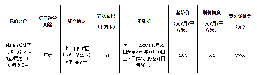7.优先承租权情况:佛山市爱克斯龙电力科技有限公司为本项目优先承租权权利人(注:优先承租权权利人需以自己的名义办理本标的的竞买申请、交纳竞买保证金,取得网上报价权限,在其他竞买人报价后,可点击行使优先权,同等价位优先承租权权利人享有优先权。优先承租权权利人没有办理竞买申请并交纳竞买保证金的,视为放弃优先承租权)。