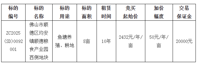 1.项目名称:佛山市顺德区均安镇顺德粮食产业园西侧地块公开招租项目
