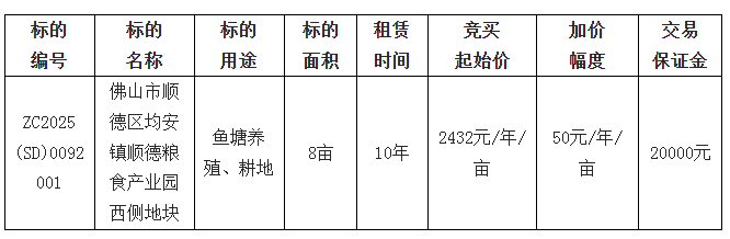 1.项目名称:佛山市顺德区均安镇顺德粮食产业园西侧地块公开招租项目