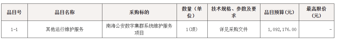南海公安数字集群系统维护服务项目竞争性磋商公告