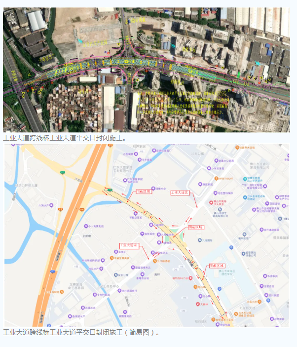 根据沙龙路工业大道平交口工业大道跨线桥建设需要,从2025年10月14日开始,需要对该平交口实施封闭施工,围蔽时间为2025年10月14日至2026年1月15日。机动车辆通过辅道行驶,工业大道方向车辆绕行,非机动车通过辅道外侧人行道及招商悦府外侧道路行驶。
