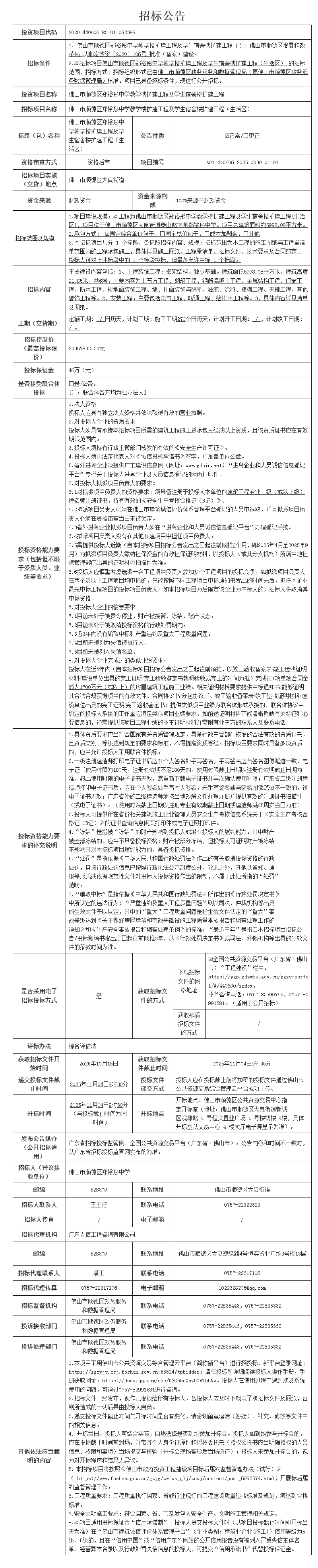 佛山市顺德区郑裕彤中学教学楼扩建工程及学生宿舍楼扩建工程(生活区)招标公告
