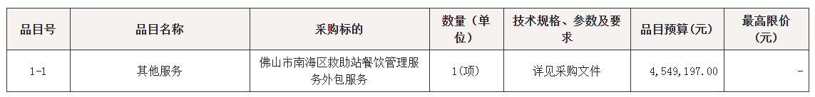 项目名称:佛山市南海区救助站餐饮管理服务外包项目(二次)