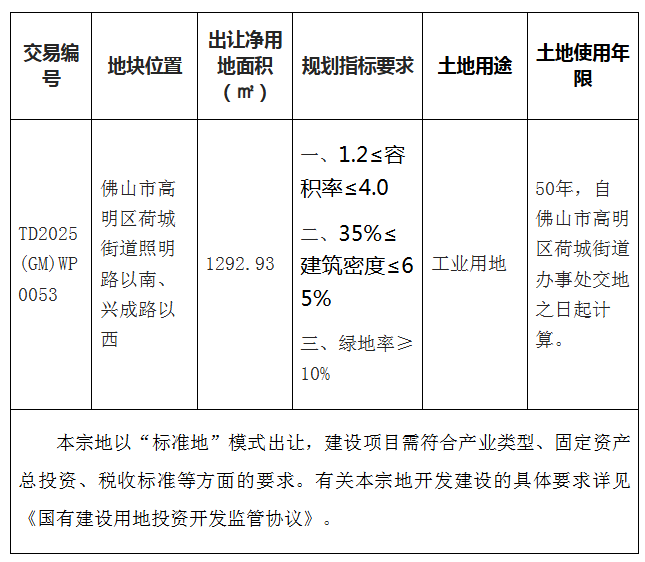 五、有意参与竞买者可于2025年10月16日后登录网上交易系统下载该地块的《佛山市高明区国有建设用地使用权网上拍卖出让文件》。