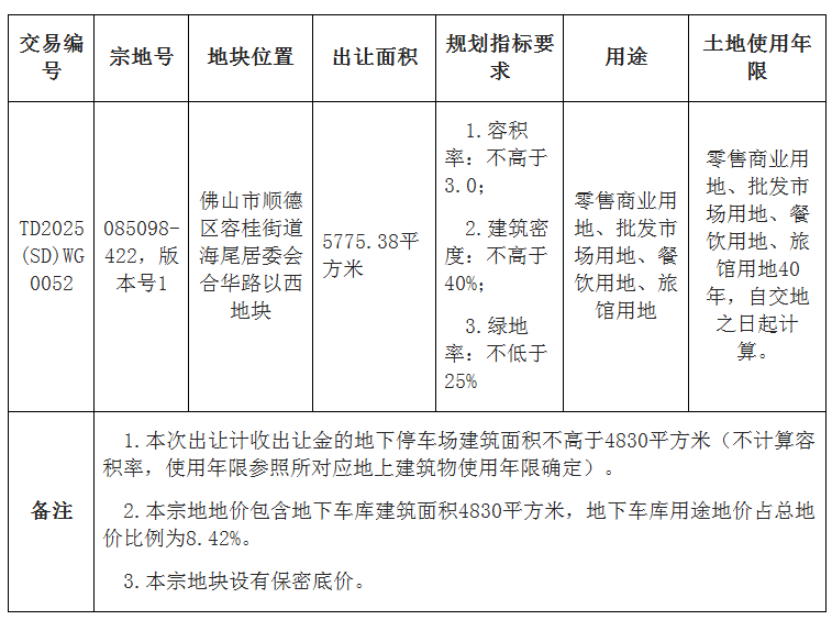 十、自本次公告起至网上挂牌截止期间,如有关于本地块网上挂牌文件的修改、澄清、说明等将通过网上交易系统、佛山市顺德区公共资源交易中心网站发布,请有意参与竞买者密切留意。其它未尽事宜,详见该地块的交易文件。
