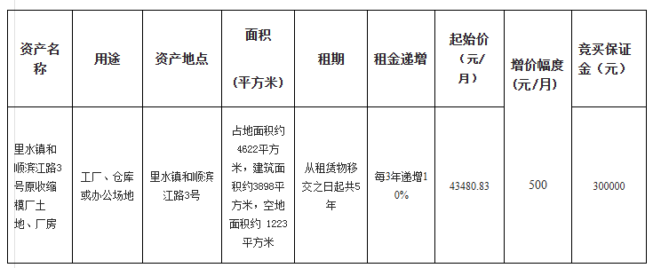 南海里水镇和顺滨江路3号原收缩模厂土地、厂房租赁项目