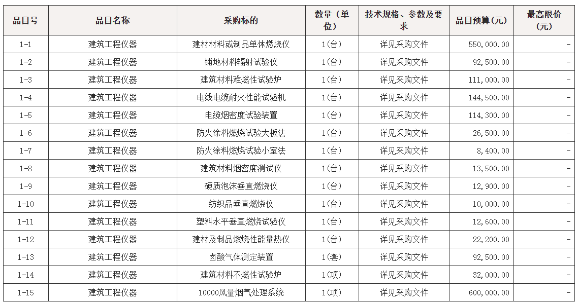 南海区建筑工程质量检测站购置消防建材检测设备招标公告