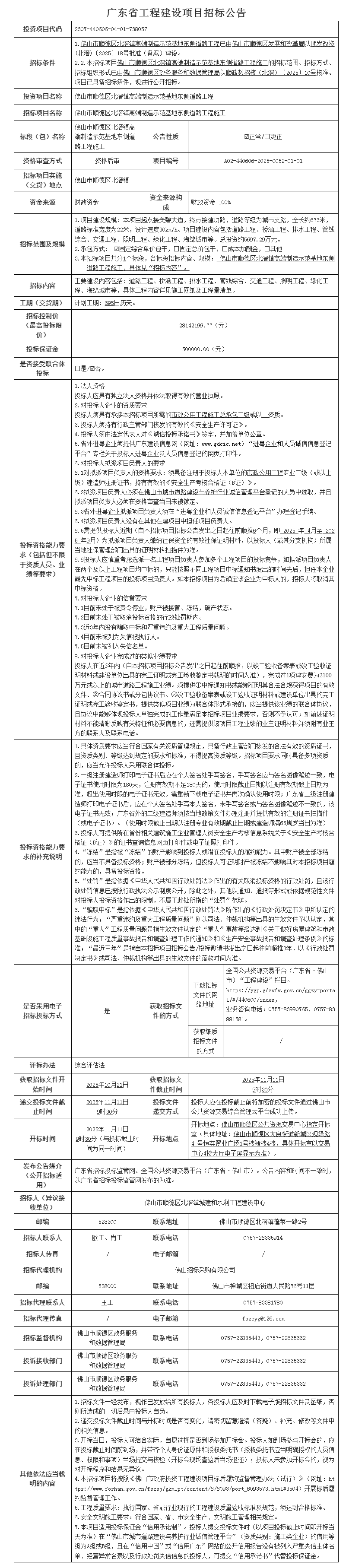 佛山市顺德区北滘镇高端制造示范基地东侧道路工程施工招标公告