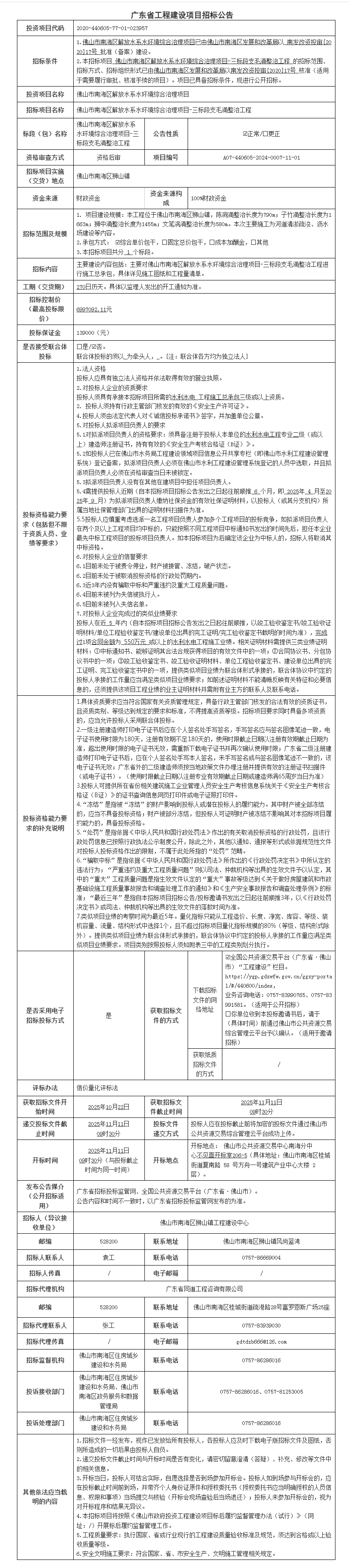 佛山市南海区解放水系水环境综合治理项目-三标段支毛涌整治工程招标公告
