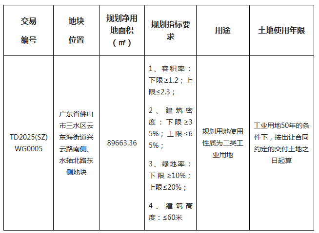 五、有意参与竞买者可于2025年10月21日后登录网上交易系统下载TD2025(SZ)WG0005地块的《佛山市国有建设用地使用权网上挂牌出让文件》。