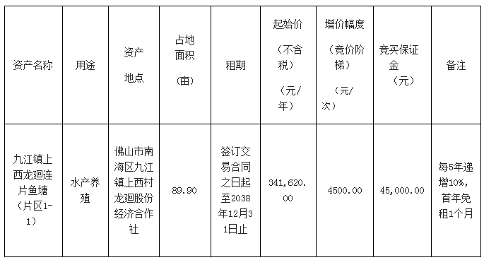 > 南海九江镇上西龙廻连片鱼塘(片区1-1)租赁公告