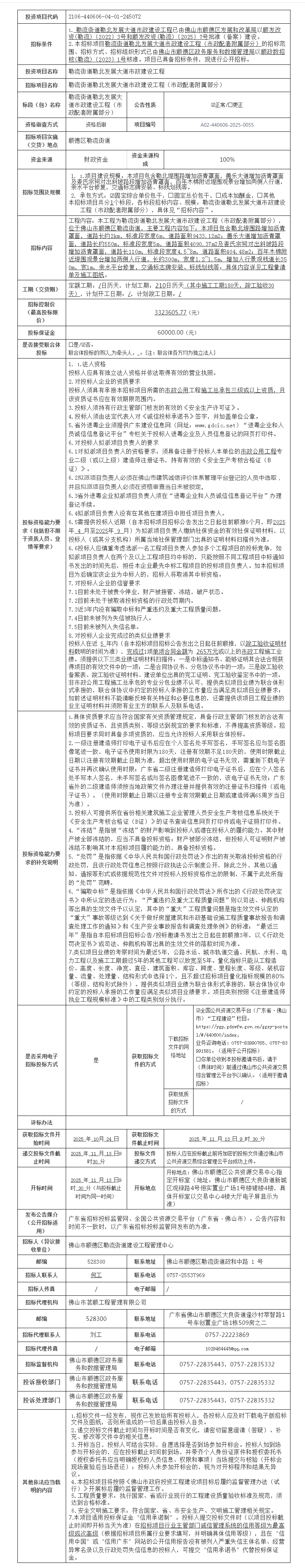 顺德勒流街道勒北发展大道市政建设工程(市政配套附属部分)招标公告