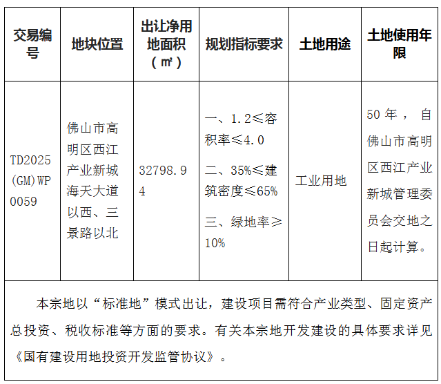 五、有意参与竞买者可登录网上交易系统下载TD2025(CC)WG0018地块的《佛山市柒伍柒科技有限公司国有建设用地使用权网上挂牌出让文件》。