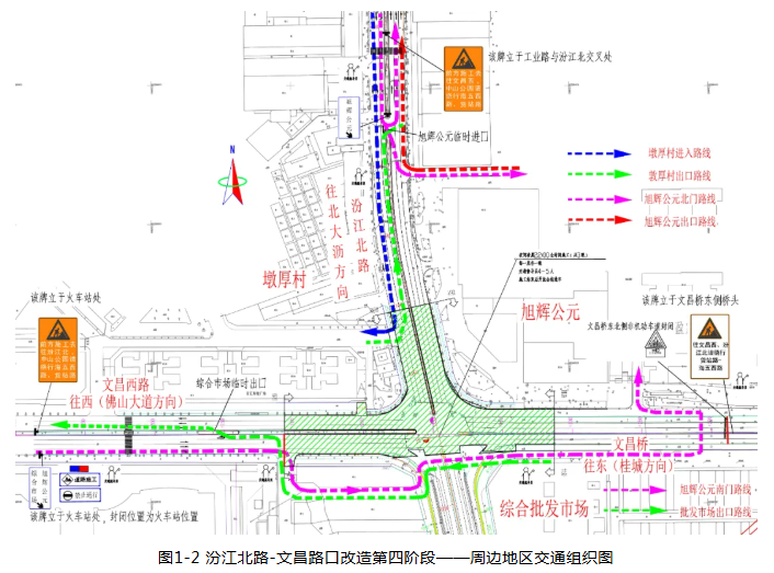 由于改造期间汾江北路-文昌路路口夜间无通行能力,建议途径车辆可实施绕行。