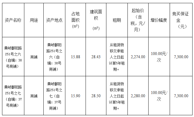 南海大沥镇黄岐鄱阳路251号之六(自编:38号商铺)等两项物业出租项目