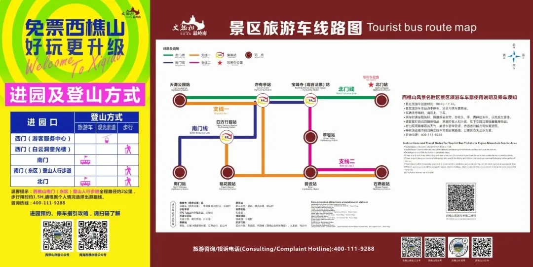 景区登山方式、旅游车路线图: