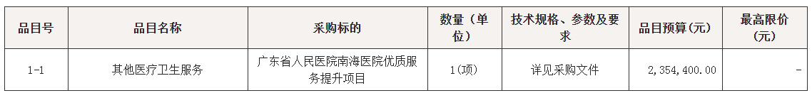 项目名称:广东省人民医院南海医院优质服务提升项目