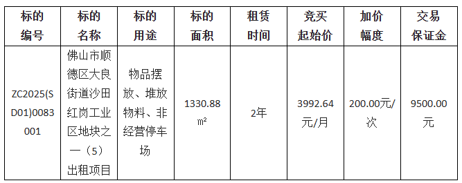 2.佛山市公共资源交易中心南海分中心通过佛山市资产交易网上交易系统及粤公平网站发布的项目信息(包括但不限于公告信息、交易文件、合同条款等)并不构成佛山市公共资源交易中心南海分中心对项目的任何交易建议。意向竞买人应不依赖于已披露的项目信息并自行对项目的相关情况进行必要的尽职调查和充分了解,对是否竞买该项目及项目成交后可能发生的费用和存在的风险自行作出充分评估,并独立承担所有风险。意向竞买人一经申请参加竞买,即视为知晓、认可项目现状,佛山市公共资源交易中心南海分中心对此不承担任何法律责任。
