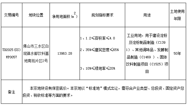 佛山市三水区白坭镇水都饮料基地南拓片区2号网上拍卖出让