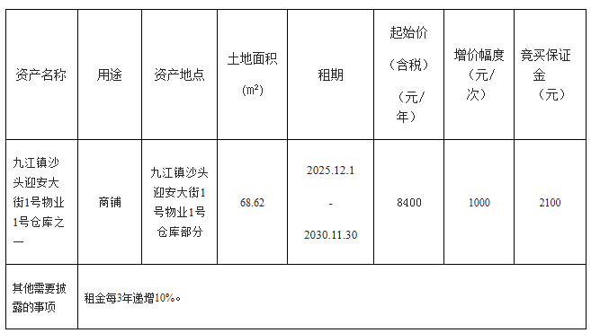 2.竞买保证金到账截止时间为2025年11月07日16时;