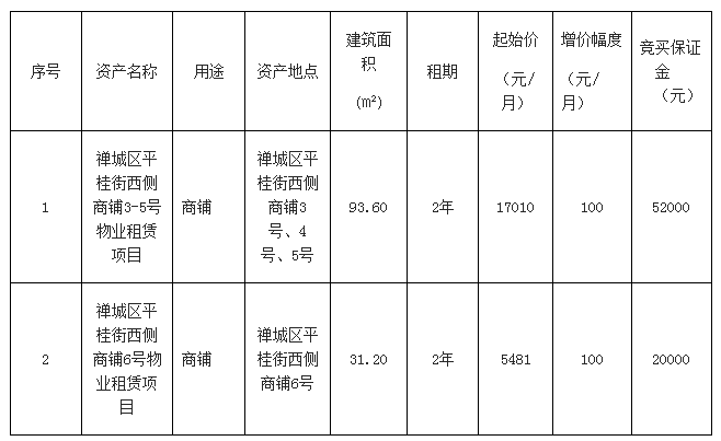 禅城区平桂街西侧商铺3-5号等一批物业租赁项目