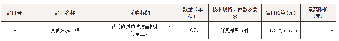 采购包1(春花岭隧道边坡坡面排水、生态修复工程):