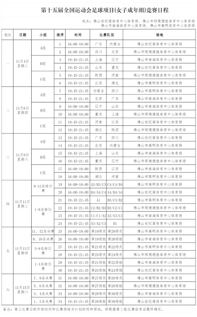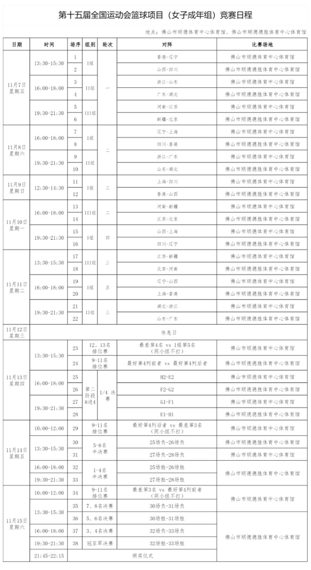 比赛时间:11月4日、6日、8日、11日、13日、15日。