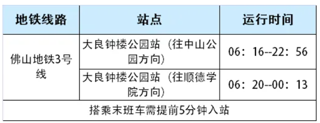 (1)地铁出行:距离场馆2.7公里设有顺德学院地铁站,往中山公园方向营运时间为6:05至22:45,并设有顺德M3001地铁接驳专线途经德胜体育中心,每天运行时间为7:00至20:00。
