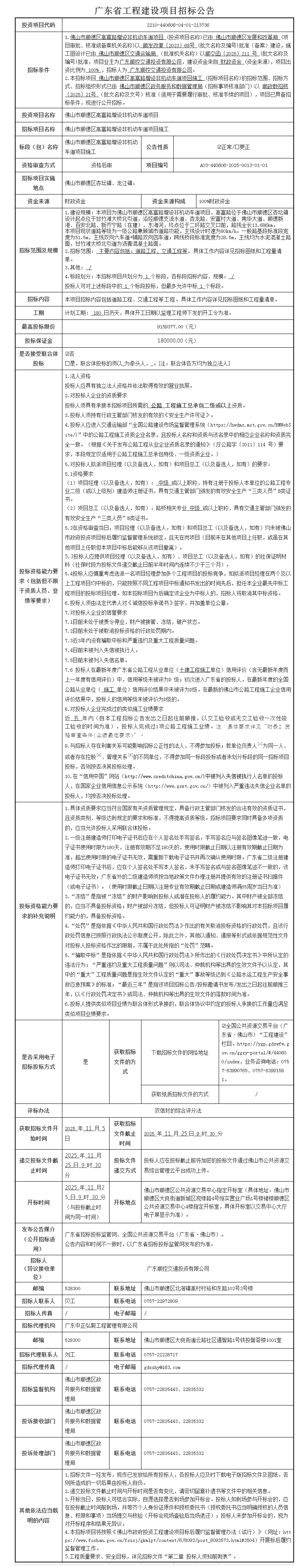 时间:2025-11-06 人气:84 来源:佛山市公共资源交易信息化综合平台 作者: