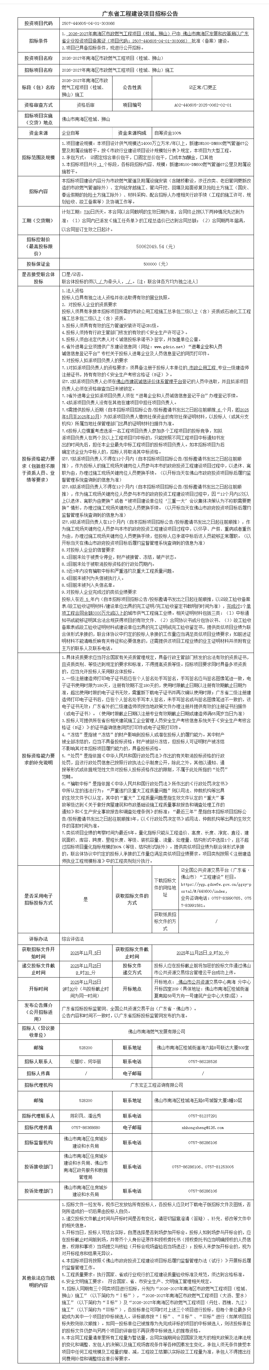 2026-2027年南海区市政燃气工程项目(桂城、狮山)施工招标公告