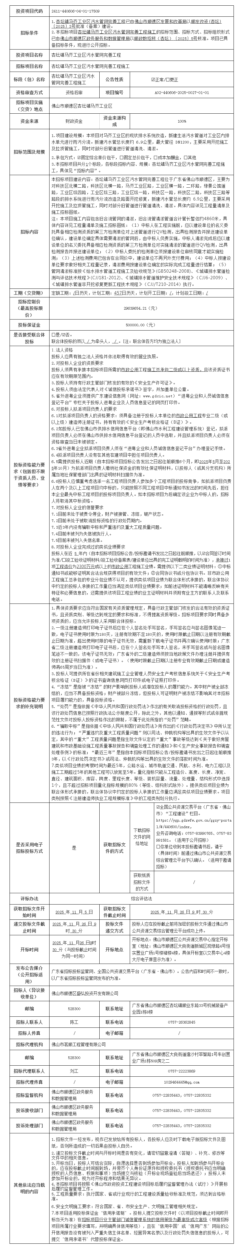 时间:2025-11-06 人气:94 来源:佛山市公共资源交易信息化综合平台 作者:
