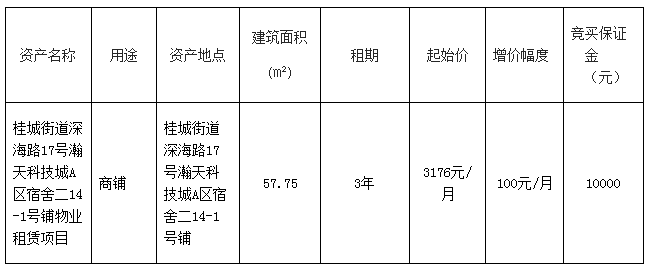 > 南海桂城街道深海路17号瀚天科技城A区宿舍二14-1号铺物业租赁项目