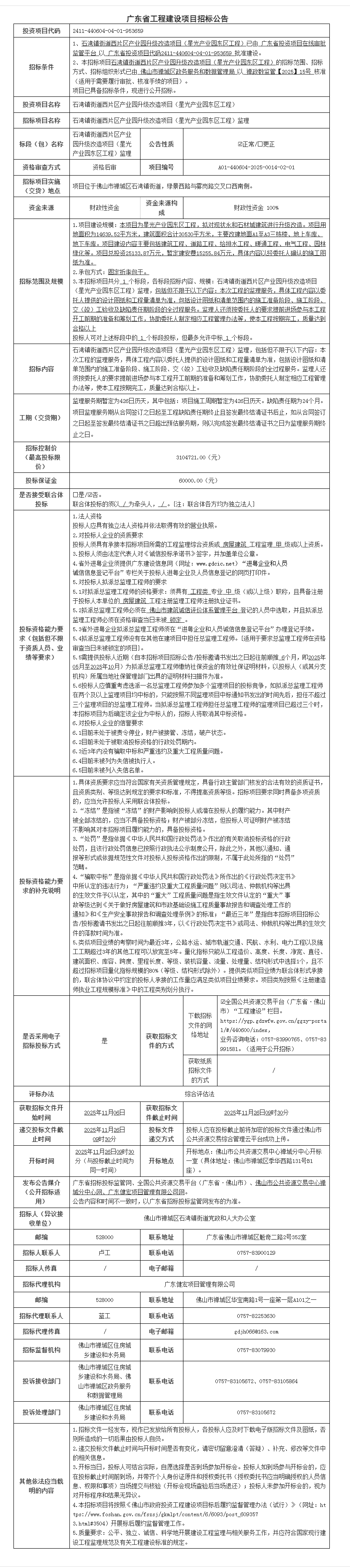 时间:2025-11-09 人气:33 来源:佛山市公共资源交易信息化综合平台 作者: