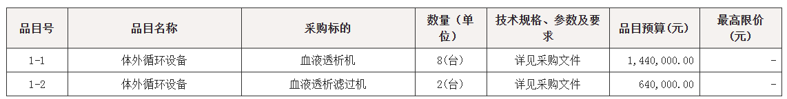 采购包1(血液透析机、血液透析滤过机采购):